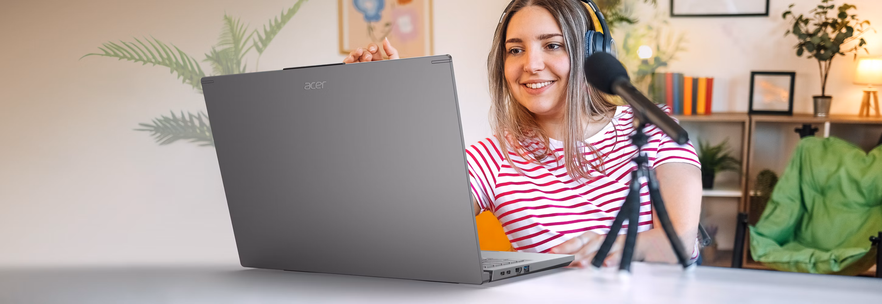Funkce AcerSense™ poskytuje více možností pro ovládání zařízení pouhým klepnutím a navíc umožňuje snadno spravovat systém. Vylepšete si videohovory technologiemi Acer PurifiedVoice™ a PurifiedView™ 2.0. Vytvářejte a upravujte AI samolepky pomocí aplikace Acer LiveArt™ 2.0, ať už jste kdekoli.