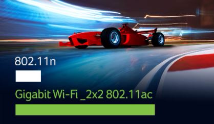 Technologie gigabitového připojení Wi-Fi 2x2 802.11ac 160 MHz (1 733 Mb/s) je až 12krát rychlejší než technologie 802.11n.