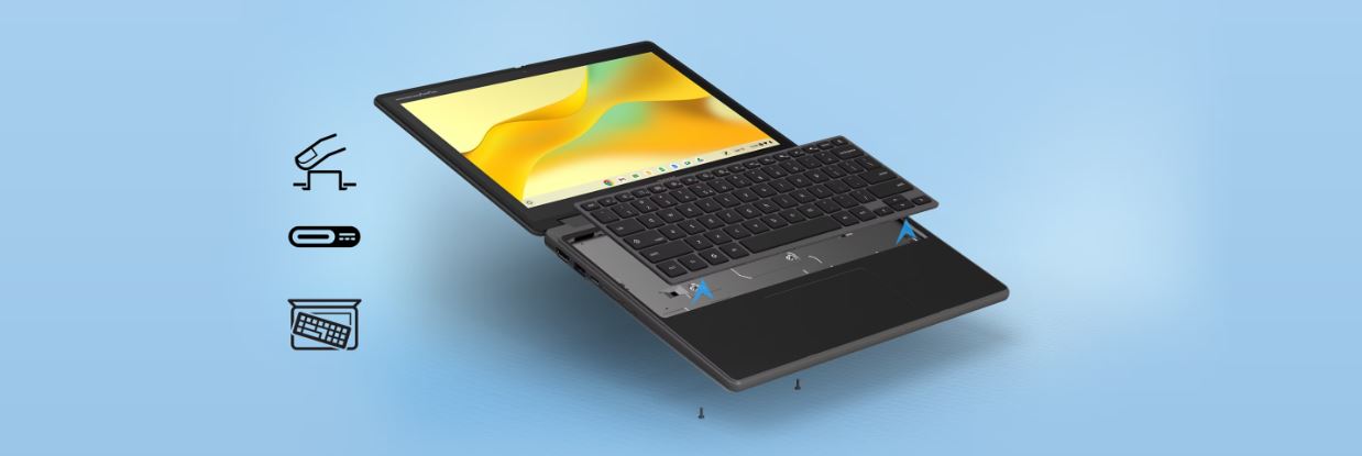 Acer Chromebook Spin 512, špiÄŤkovĂ˝ notebook do školy a lĂdr mezi Chromebooky pro vzdÄ›lávánĂ, podporuje vĂ˝uku dĂky displeji s nĂzkĂ˝m vyzaĹ™ovánĂm modrĂ©ho svÄ›tla podle TĂśV, dotykovĂ© obrazovce, stylusu a kameĹ™e s vĂ˝hledem na svÄ›t. OdolnĂ˝ dĂky standardu Wi-Fi 7 a modulárnĂ konstrukci.
