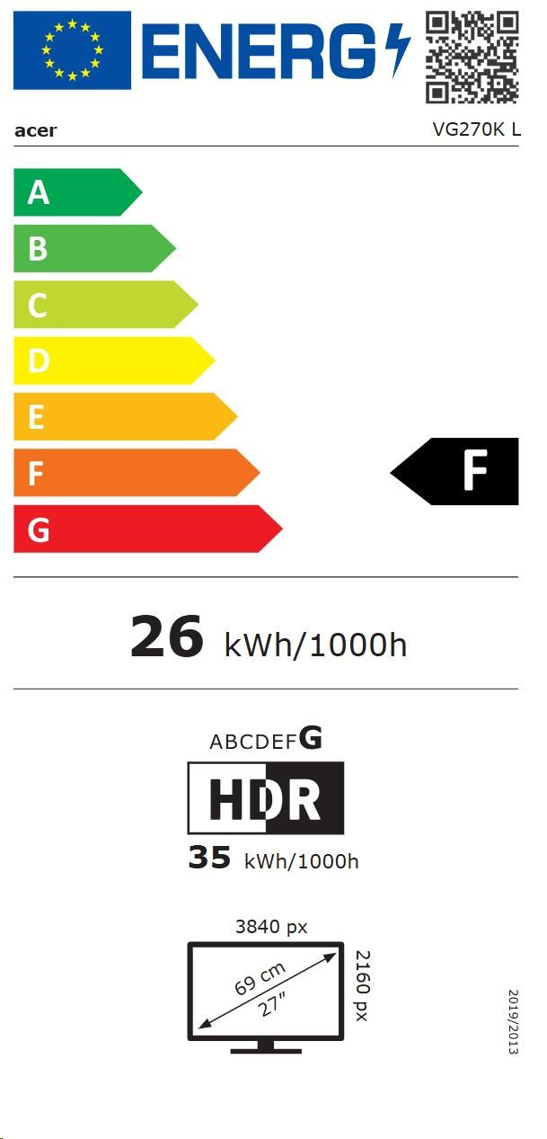 ACER LCD Nitro VG270KL1bmiipx,27" IPS,3840x2160,144Hz,250nits,HDMI,DP,Audio,Repro,Vesa,Black