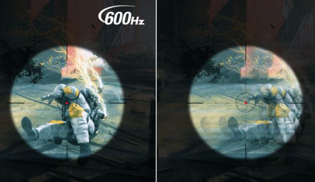 Když začne být akce intenzivní, je přesnost klíčová. Velmi plynulý obraz s rychlou obnovovací frekvencí až 600 Hz zrychluje vykreslování snímků a snižuje prodlevu mezi vstupem a výstupem. Vy se tak během hraní můžete rozhodovat mnohem hbitěji a rychleji.