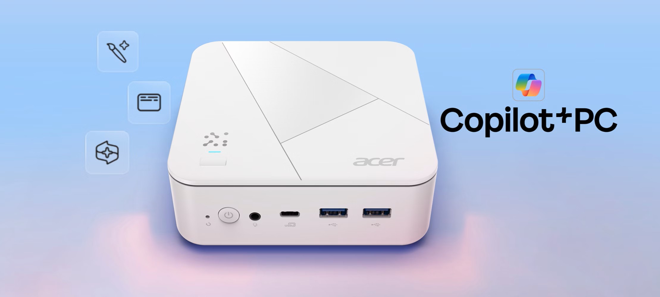 ExtrĂ©mnÄ› kompaktnĂ poÄŤĂtaÄŤ Acer Revo Box AI s rozmÄ›ry 13 x 13 x 4,3 cm a hmotnostĂ pod 1 kg nabĂzĂ bleskurychlou Wi-Fi 6E, dva 2,5Gb ethernetovĂ© porty a vestavÄ›nou ÄŤteÄŤku otiskĹŻ prstĹŻ pro vyššà zabezpeÄŤenĂ. Je k dispozici v ÄŤernĂ© nebo bĂlĂ© barvÄ›, hladce zapadne do jakĂ©hokoli prostoru a zároveĹ poskytuje vysokĂ˝ vĂ˝kon.