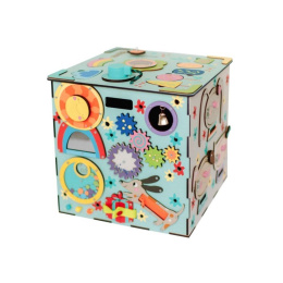 Originální activity board kostka s LED osvětlením XXL je montessori hračkou, která dětem přinese spoustu zábavy, zdokonalí jejich schopnosti a naučí je novým dovednostem. Každá ze stran modrého activity boardu je originální a nabízí nespočet možností ke hře, poznávání a zkoumání. Nechybí ozubená kolečka, různé způsoby zapínání a zavírání, tkanička, bludiště, korálky, vkládací puzzle, různá překvapení i sluníčkový vypínač, který activity board kostku rozzáří..