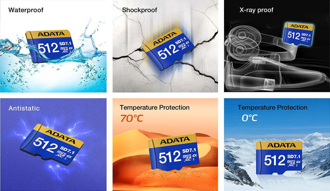 Paměťová karta microSDXC Express je vybavena funkcĂ pro automatickou korekci chyb LDPC (Low-density parity-check) odpovĂdajĂcĂ jednotkám SSD a prošla testy odolnosti proti tekutinám, nárazĹŻm, rentgenovĂ©mu zářenĂ, statickĂ© elektĹ™inÄ› a extrĂ©mnĂm teplotám, aby pro dĹŻleĹľitá data nabĂdla opravdu efektivnĂ ochranu.