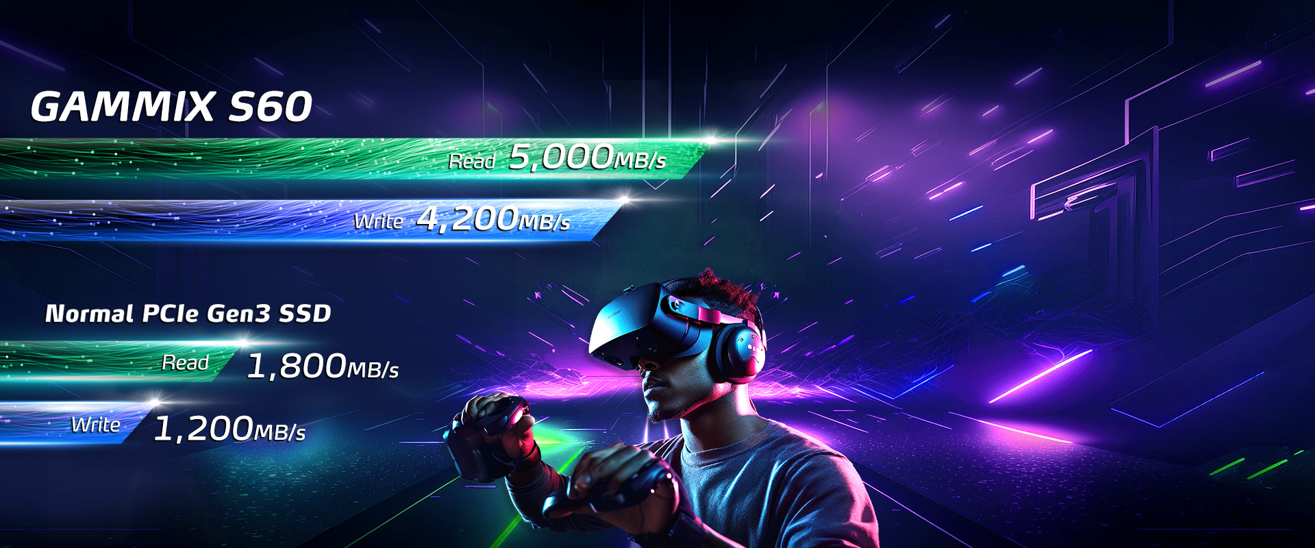 Vraťte jim to i s úroky! Jednotka GAMMIX S60 obsahuje přenosové rozhraní PCIe Gen4 x4, které je schopné dosáhnout rychlostí sekvenčního čtení/zápisu až 5 000/4 200 MB za sekundu, což stačí na to, abyste mohli ovládnout nejnovější e-sportové platformy. Je dvojnásobně rychlejší než standardní jednotky SSD se sběrnicí PCIe Gen3 a 15krát rychlejší než jednotky SSD s rozhraním SATA. Je naprosto zpětně kompatibilní s aktuálními platformami se sběrnicí PCIe 3.0 a pomůže vám zažít to vzrušení, když drtíte soupeře!