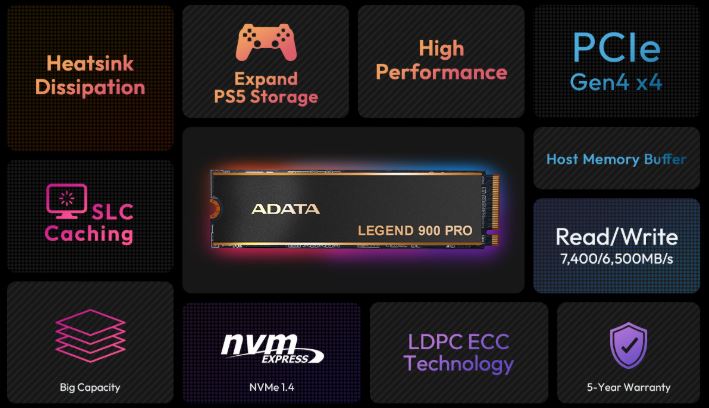 LEGEND 900 PRO využívá přenosové rozhraní PCIe 4.0 a lze jej nainstalovat do PS5 jako rozšiřující pevný disk pro řešení potíží s nedostatkem úložiště PS5. LEGEND 900 PRO perfektně zapadá do slotu pro disk PS5 a zároveň poskytuje plynulý herní zážitek bez zpoždění; zároveň si užíváte mistrovská díla trojitého A.