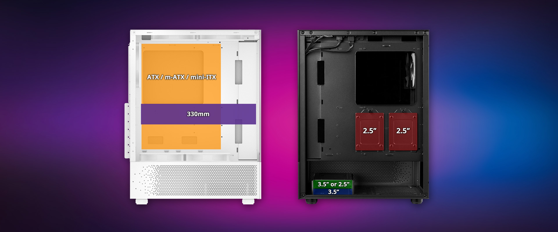SkĹ™ĂĹ XPG INVADER X MINI umoĹľĹuje pouĹľĂt aĹľ 166mm vzduchovĂ˝ chladiÄŤ procesoru nebo 240mm radiátor, takĹľe se mĹŻĹľete libovolnÄ› rozhodnout pro takovĂ© vysoce vĂ˝konnĂ© chladicĂ Ĺ™ešenĂ, kterĂ© sami chcete.