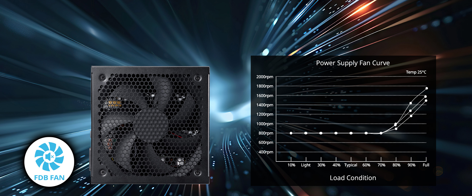 * Tichý a odolný ventilátor FDB: Zajišťuje účinné chlazení při zachování nízké hladiny hluku a dlouhodobé spolehlivosti.