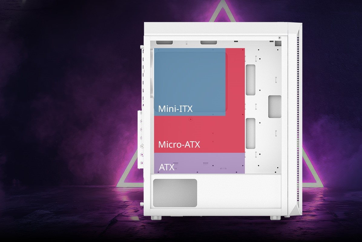 XPG VALOR AIR PLUS podporuje základní desky formátu mini-ITX, micro-ATX a ATX a nabízí tak všestranné možnosti sestavení základních i výkonných herních počítačů.