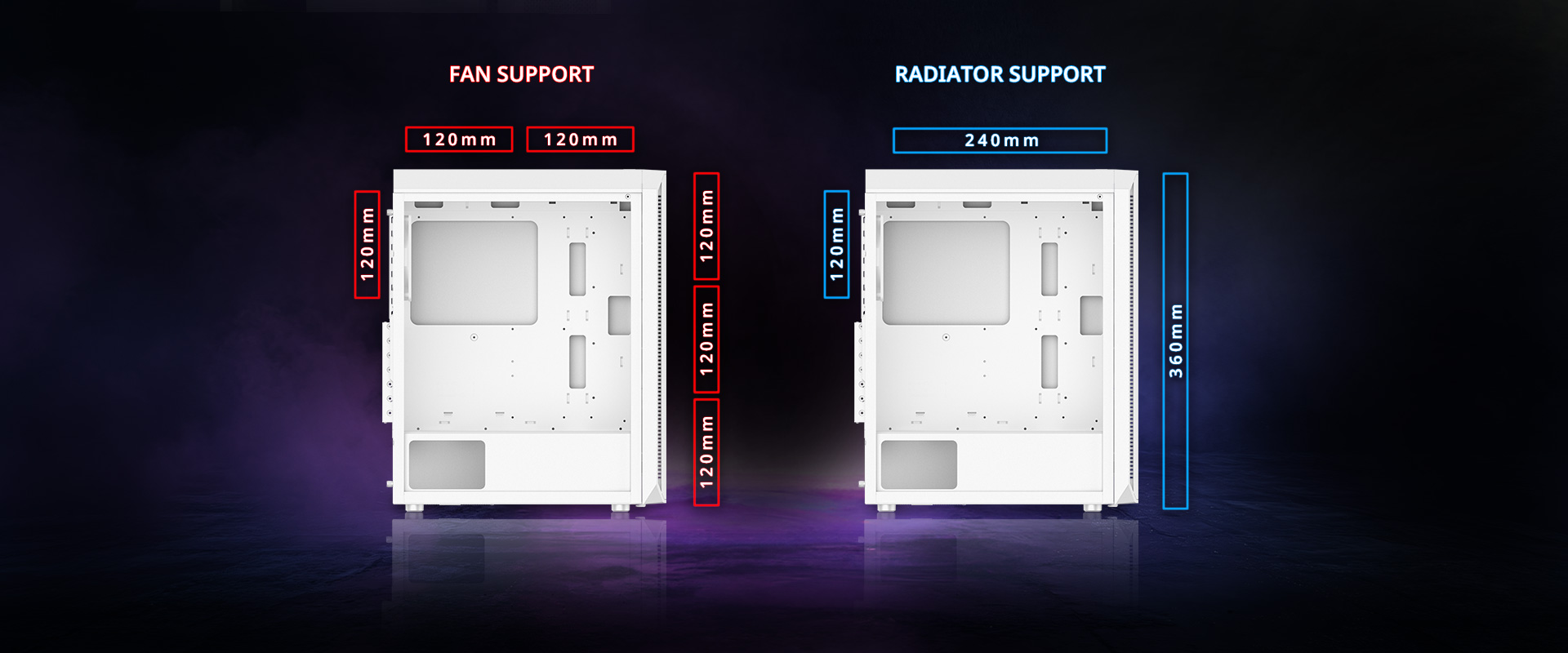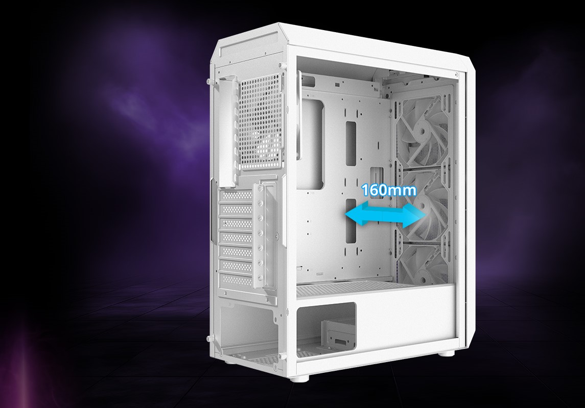 XPG VALOR AIR PLUS podporuje 360mm radiátor vpředu, 240mm radiátor nahoře nebo 120mm radiátor vzadu. Pro uživatele vzduchových chladičů podporuje tato skříň chladiče až do výšky 160 mm, což vyhovuje většině nejprodávanějších modelů.