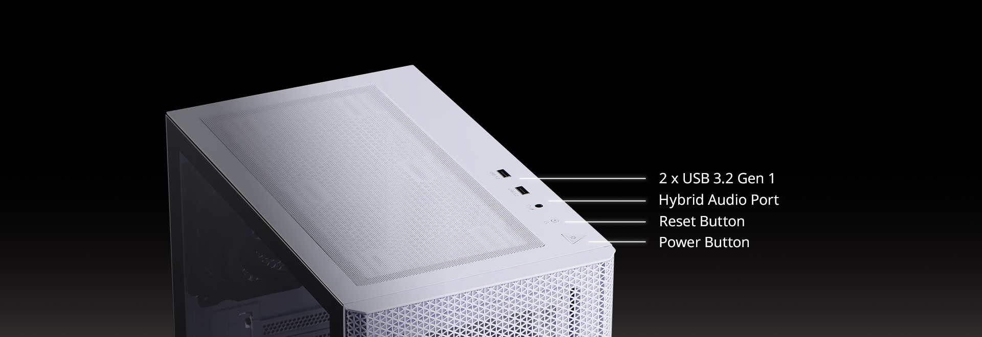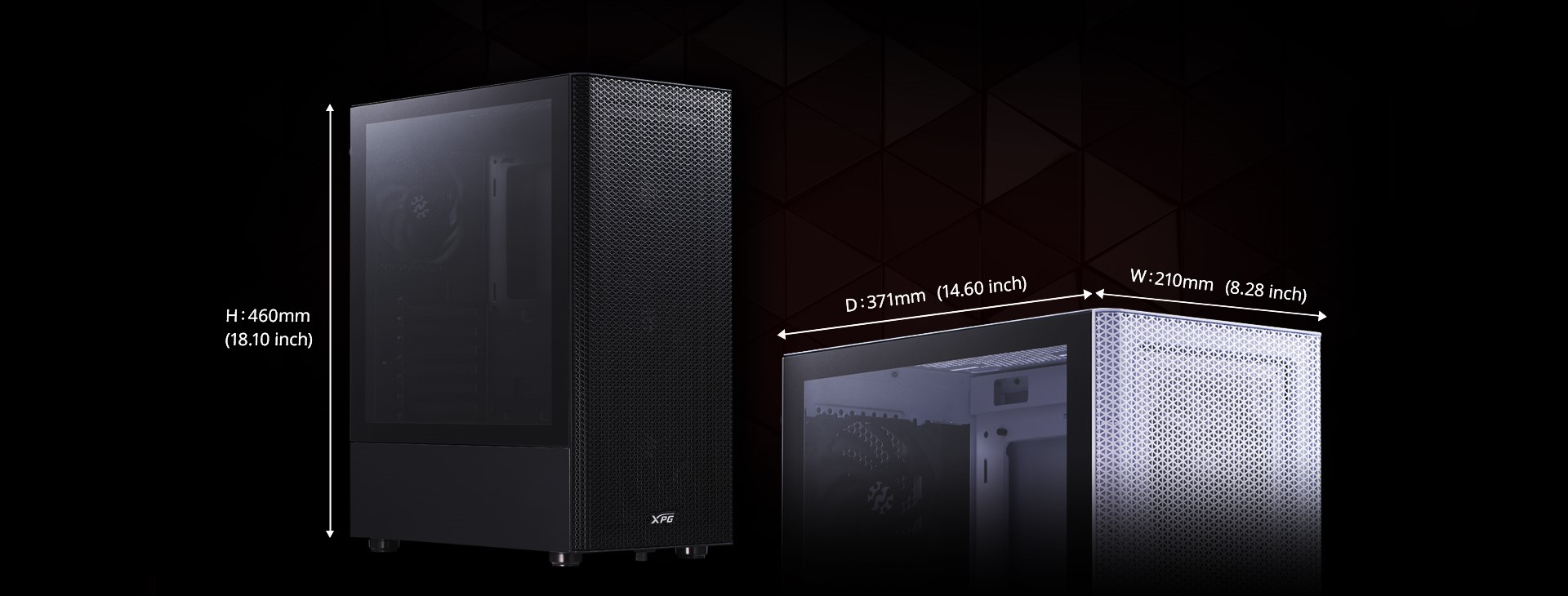 Odnímatelný magnetický přední panel z dírkované oceli a filtr, který lze rychle a pohodlně čistit. 3mm boční panel z tvrzeného skla, který je výstavní skříní vašich komponent XPG.