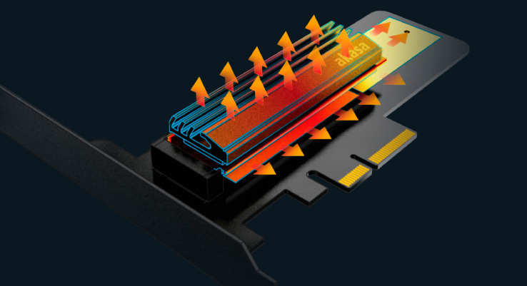 - PCB exponovaná měď ve spojení s dalším designem chladiče - snižuje teplo SSD a zvyšuje výkon