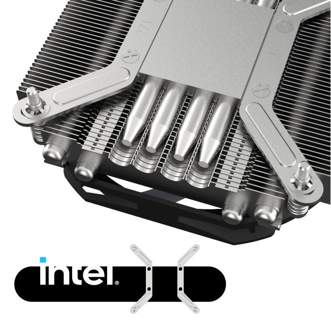 Montážní sada nabízí snadnou a bezpečnou instalaci pro všechny základní desky Intel LGA1700, LGA1200, LGA115X.