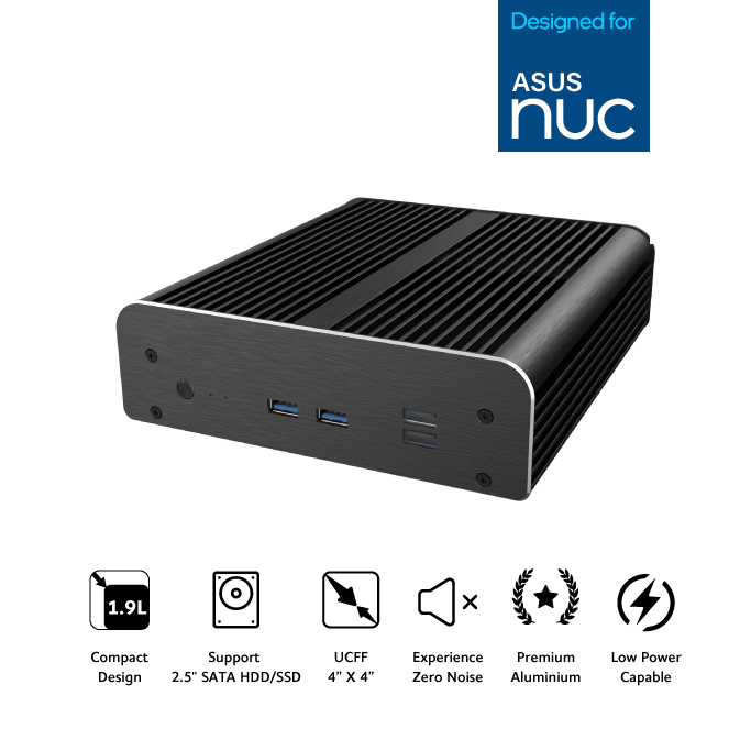 Skříň Newton RC má malé rozměry a celkovou kompaktní velikost 1,9 l. Chlazení procesoru bez ventilátoru pro tichý provoz a klasický styl, to vše zabalené do krásného prémiového kartáčovaného hliníku. Je to ideální platforma pro diskrétní, stylový a výkonný mini PC založený na počítači ASUS NUC.