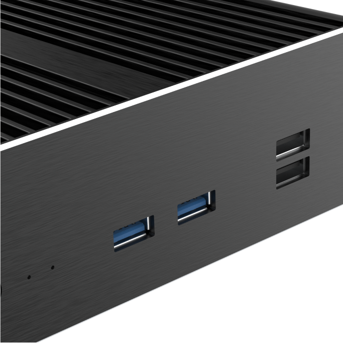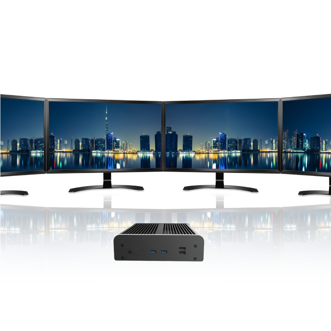 Skříň Newton RC poskytuje otvory pro konektory pro připojení až čtyř displejů 4K. Ideální pro řadu podnikových aplikací, jako je zabezpečení a digitální nápisy.