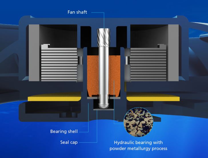 Technologie HD Bearing vyuĹľĂvá zvýšenou kapacitu oleje, která zlepšuje mazánĂ loĹľiska a nabĂzĂ plynulejšà otáčenĂ. Vylepšená distribuce oleje vytvářà maximálnĂ plynulost, která prodluĹľuje Ĺľivotnost a spolehlivost ventilátoru aĹľ na 40 000 hodin a sniĹľuje hluÄŤnost ventilátoru.