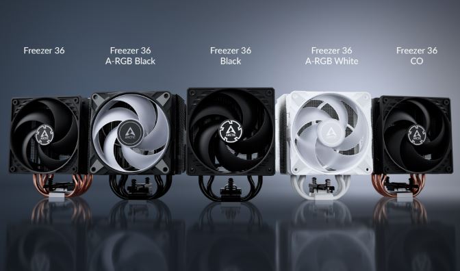 Freezer 36 je k dispozici v pÄ›ti rĹŻznĂ˝ch verzĂch, všechny jsou vybaveny dvÄ›ma ventilátory v konfiguraci push-pull. KromÄ› standardnĂho modelu s hlinĂkovĂ˝m chladiÄŤem je k dispozici i verze s ÄŤernĂ˝m chladiÄŤem. Pro nepĹ™etrĹľitĂ˝ provoz je k dispozici takĂ© verze CO, která je vybavena ventilátory s dvojitĂ˝mi kuliÄŤkovĂ˝mi loĹľisky. UĹľivatelĂ© si mohou alternativnÄ› vybrat mezi ÄŤernou a bĂlou verzĂ s ventilátory A-RGB.