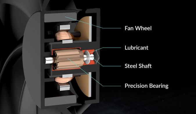 Díky kombinaci slitiny a maziva vyvinuté v Německu je tření uvnitř ložiska minimalizováno a je dosaženo vyšší účinnosti. Kromě zabránění ztrátě maziva je opotřebení čepu a pouzdra také sníženo na minimum. Vzniká tak méně tepla, menší hluk ložisek a výrazně se prodlužuje životnost ventilátoru.