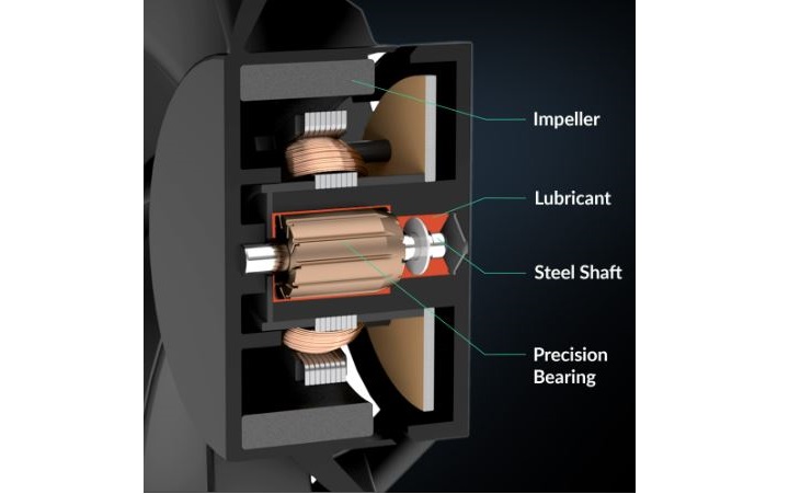 Das reibungsarme Gleitlager sorgt für einen besonders leisen Betrieb – sowohl bei niedrigen Drehzahlen als auch unter wechselnder Last läuft der Lüfter angenehm ruhig.