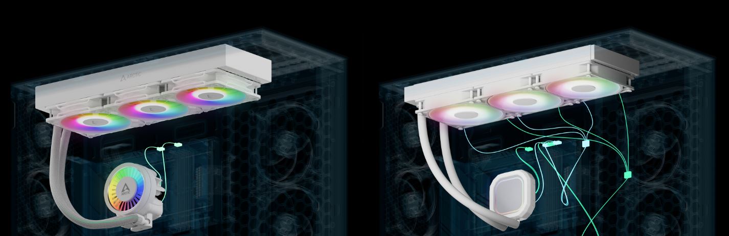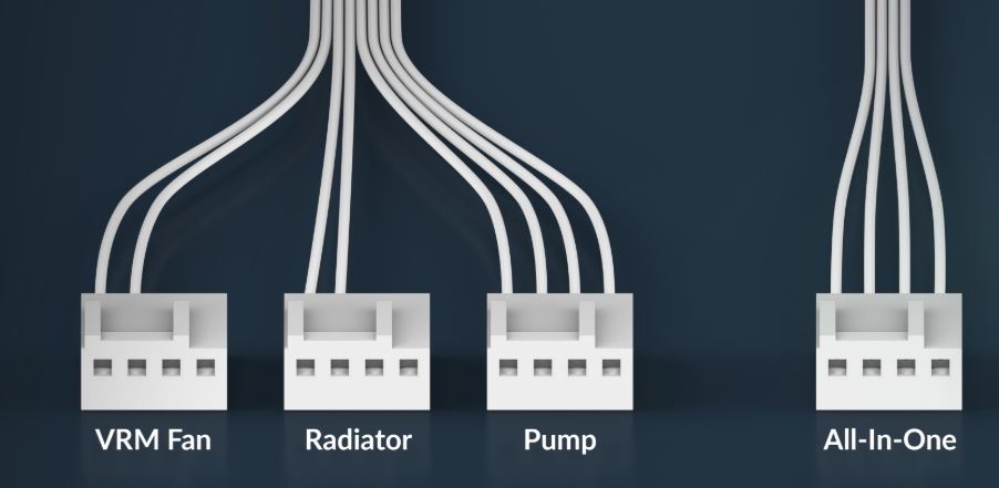 Pomocí rozbočovacího kabelu lze čerpadlo, VRM a ventilátory chladiče ovládat buď samostatně, nebo společně prostřednictvím jediného signálu PWM s kabelem vše v jednom.