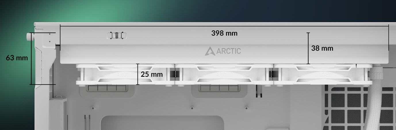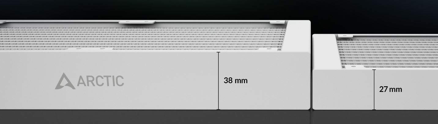 Der 38-mm-Radiator ermöglicht nicht nur eine bessere Wärmeabgabe, sondern besitzt auch ein größeres Flüssigkeitsvolumen als herkömmliche 27-mm-Radiatoren. Das reduziert Wärmestau und sorgt für eine effizientere Bewältigung von Temperaturspitzen.