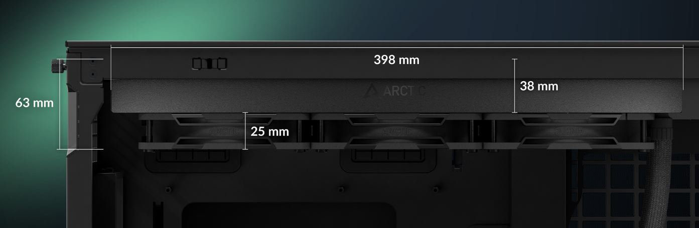 Der 38-mm-Radiator ermöglicht nicht nur eine bessere Wärmeabgabe, sondern besitzt auch ein größeres Flüssigkeitsvolumen als herkömmliche 27-mm-Radiatoren. Das reduziert Wärmestau und sorgt für eine effizientere Bewältigung von Temperaturspitzen.