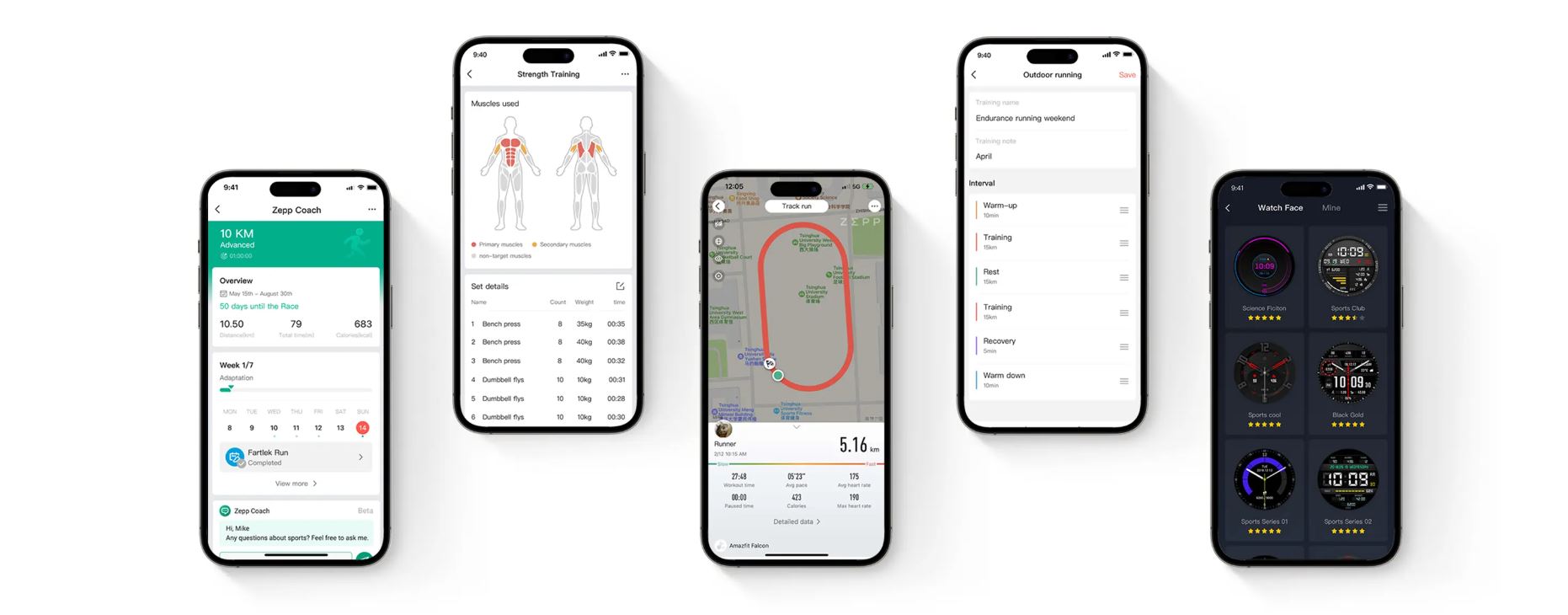 Aplikace Zepp, která je kompatibilnĂ se zaĹ™ĂzenĂmi s operaÄŤnĂmi systĂ©my iOS a Android, provádĂ analĂ˝zu zdravotnĂch a fitness dat, nabĂzĂ cifernĂky hodinek a obchod s aplikacemi, poskytuje aktualizace systĂ©mu hodinek a mnoho dalšĂho. S hodinkami mĹŻĹľete dokonce synchronizovat i reĹľim Nerušit ze svĂ©ho telefonu.