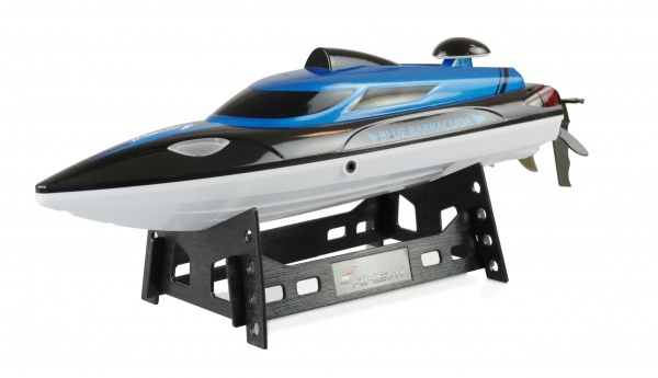 Závodní člun na dálkové ovládání Blue Barracuda V2 BootTento RC člun je perfektní volbou pro začínající kapitány. Blue Barracuda V2 – rychlejší, agilnější, větší baterie pro delší dobu jízdy a optimalizované bezpečnostní prvky. Zcela přepracován byl také trup. Nyní má dvojité těsnění (2 víčka) a ještě účinněji chrání před vniknutím vody. Člun je odolný proti převrácení. Díky ergonomické a promyšlené konstrukci trupu klouže loď velmi hladce a elegantně po vodní hladině. S LED osvětlením vpředu i vzadu nabízí lepší orientaci a viditelnost. Světla lze zapínat a vypínat pomocí moderního dálkového ovladače 2,4 GHz s dosahem 100 m. Jakmile dojde k překročení dosahu, vysílač začne vydávat zvukové varování.Rychlá RC loďkaČlun dosahuje úžasné rychlosti až 25 km/h. Má také ochrannou funkci proti náhodnému spuštění výkonného motoru na souši a také ochrannou funkci při převrácení lodě, kdy se sama otočí zpátky na hladinu. Pozoruhodné na tomto modelu je také plně proporcionální dálkové ovládání (umožňuje citlivé řízení a akceleraci). Vyzdvihnout je třeba i vodní chlazení, které je již standardně instalováno a je pro tuto třídu lodí neobvyklé. To znamená, že tato závodní loď zůstane vždy „v pohodě“ i při delších výletech na plný plyn a to i v létě.Do ovladače budete potřebovat 4 x AA baterie. Obsah balení: RC závodní člun Blue Barracuda Akumulátor Li-Ion 7,4 V 1100 mAh Dálkové ovládání 2,4 GHz Nabíjecí kabel USB Náhradní lodní šroub Klíč Podstavec Návod k použití Technické parametry: Délka: 30 Šířka: 8.8 Výška : 7.8 Rychlost: 25 Kapacita akumulátoru: 1100 Napětí akumulátoru: 7.4 Typ akumulátoru: Li-ion Typ nabíječky: USB Napájení ovladače: 4xAA Vodou chlazený motor: ano Barva: modrá Proporcionální plyn: ano Proporcionální zatáčení: ano LED osvětlení: ano Dosah: 100