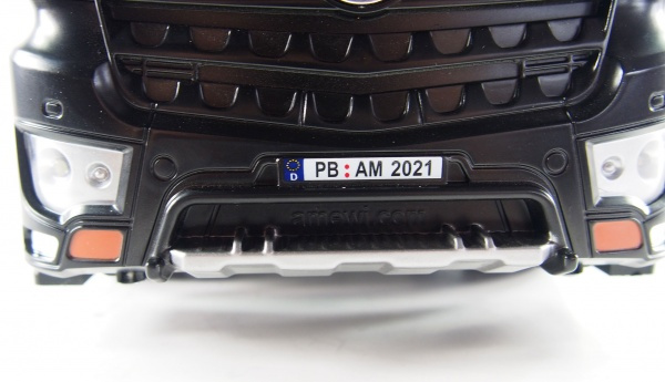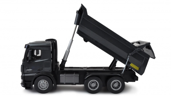 Sklápěč na dálkové ovládání Mercedes-Benz Arocs 1:18Jedná se o nový model s lepším servem zatáčení, lepšími pneumatikami a se dvěma akumulátory v balení.Celokovový RC licencovaný model Mercedes-Benz Arocs 6x4 je věrnou replikou skutečného sklápěče a má všechny funkce jako jeho předloha. Zvukové a světelné efekty jsou samozřejmostí. Arocs je název slavné serie nákladních automobilů značky Mercedes-Benz od společnosti Daimler AG. Tato vozidla pro staveniště byla poprvé představena v roce 2013 a od té doby se nacházejí na mnoha stavbách po celém světě. Tento model doplňuje naší řadu profesionálních plně funkčních celokovových stavebních strojů, jako bagr a nakladač ve stejném měřítku. Tato řada modelů stavebních strojů vyniká skvělým poměrem ceny a výkonu.Voděodolné RC nákladní autoNádherný model sklápěče Arocs je skutečně profesionální model. Sklápěč má pohon 4WD, zapouzdřenou převodovku a plně proporcionální ovládání. Je odolný proti stříkající vodě, a proto je zcela vhodný pro použití v terénu, kde si vaše děti s modelem vydrží hrát celé hodiny, a nejen Vaše děti. Konstrukce a lakování tohoto modelu v celokovovém provedení odpovídá originálu, a díky tomu je jedinečný nejen svým funkcemi ale i designem. Pneumatiky jsou vyrobeny z pravé gumy a poskytují enormní přilnavost na širokou škálu povrchů. Neméně zajímavá je i jeho nosnost, model totiž dokáže uvézt až 3,5 kg.2 akumulátory v baleníSklápěč je smontován a dodáván s již nainstalovanou elektronikou. Součástí balení jsou dva akumulátory Li-Ion 7,4 V 2000 mAh, které vám dohromady poskytnou až 30 minut jízdy. Ovládání funguje na frekvenci 2,4 GHz a je plně proporcionální. Do ovladače budete potřebovat 4 x AA baterie. Model je vybaven efektním LED osvětlením a dále vypínatelným zvukovým modulem, který jen podtrhuje jeho autenticitu. Obsah balení: RC Model Mercedes-Benz AROCS 6x4 Licencovaný Ovladač 2,4 GHz, 10 kanálů 2 x Akumulátor Li-Ion 7,4 V 2000 mAh Nabíječ USB Návod k použití Technické parametry: Měřítko: 1/18 Konstrukce auta: nákladní Délka auta: 45 Šířka auta: 14.7 Výška auta: 18.7 Hmotnost auta: 3212 Auto je vhodné na ven: ano Barva: černá Auto je vhodné do interiéru: ano Kapacita akumulátoru v autě: 2000 Napětí akumulátoru v autě: 7.4 Typ akumulátoru do auta: Li-ion Typ nabíječky: USB Výměnný akumulátor v autě: ano Napájení ovladače k autu: 4xAA Doba jízdy auta: 30 Dosah ovládání auta: 30 Frekvence ovládání RC auta: 2,4Ghz Konstrukce ovladače k autu: Páčkový Plynulá regulace rychlosti: ano Plynulá řízení zatáčení: ano Vodotěsnost (potopení): ne