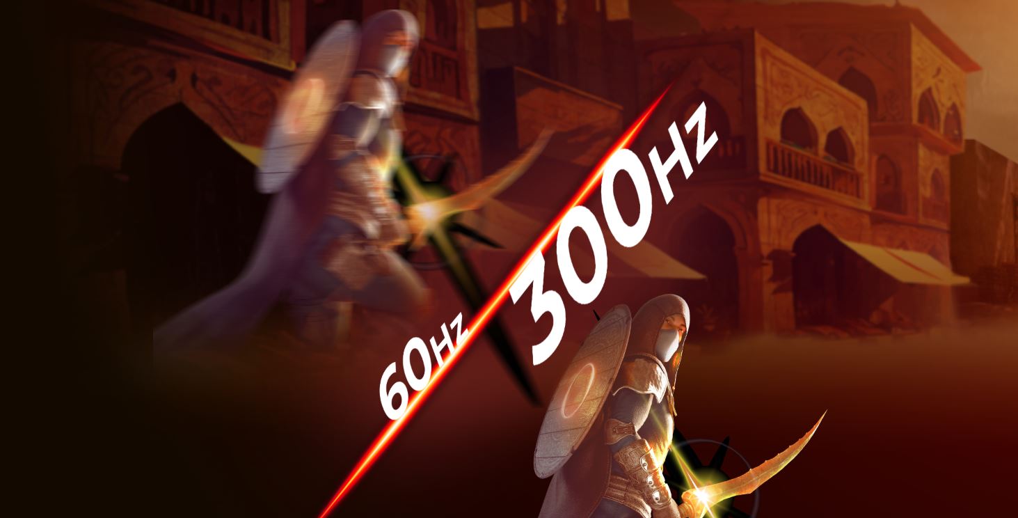 Dejte sbohem zasekávání a trhání obrazu a přivítejte plynulé a ničím nerušené hraní! Díky mimořádně rychlé obnovovací frekvenci 300 Hz máte jistotu, že váš monitor bude obnovovat obraz s neuvěřitelnou četností 300krát za sekundu. V důsledku toho budete mít k dispozici nejaktuálnější herní informace rychleji než vaši soupeři, což vám poskytne znatelnou výhodu.