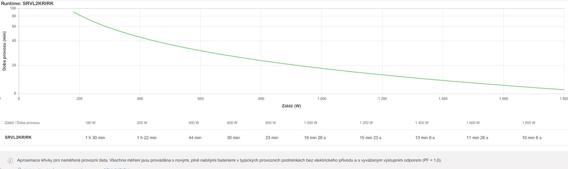 | Doba provozu pro zátěž WMin.–max.: 270-2700 W | 9min 1s |