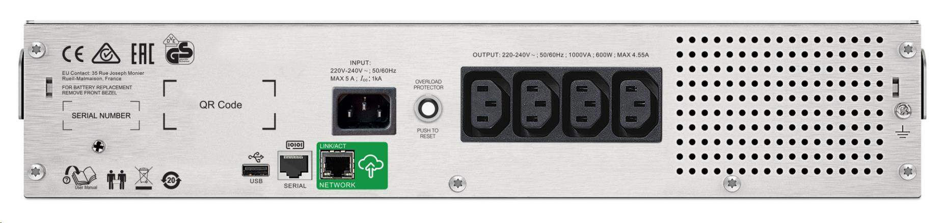 APC -opraven- Smart-UPS C 1000VA LCD RM 2U 230V with SmartConnect (600W) - Rozbaleno (Komplet)
