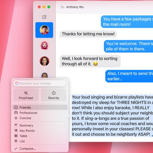 PsacĂ nástroje. Apple Intelligence ti pomĹŻĹľe s korekturami textu a pĹ™episovánĂm rĹŻznĂ˝ch verzĂ, dokud se stylisticky netrefĂš tam, kam mĂřÚ. A jednĂm kliknutĂm ti udÄ›lá shrnutĂ vybranĂ©ho textu.