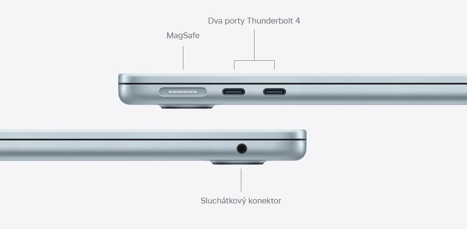 MagSafe nabĂjecĂ kabel se pĹ™ipojuje a držà pomocĂ magnetĹŻ. A kdyĹľ o nÄ›j omylem zakopneš, uvolnĂ se, takĹľe si poÄŤĂtaÄŤ neshodĂš na zem. Dva porty Thunderbolt 4 pĹ™ijdou vhod na pĹ™ipojenĂ vysokorychlostnĂch doplĹkĹŻ a napájenĂ Macu. SluchátkovĂ˝ konektor podporuje vysokoimpedanÄŤnĂ sluchátka. A ÄŤip Apple N1 pro bezdrátovĂ© sĂtÄ› ti zpĹ™ĂstupnĂ Wi-Fi 7 a Bluetooth 6 pro rychlejšà a spolehlivÄ›jšà pĹ™ipojenĂ.
