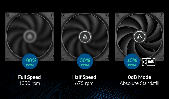 Funkce PWM umožňuje základní desce spouštět ventilátor přesně podle potřebných otáček. Tím je zaručeno požadované chlazení a minimalizována hladina hluku.