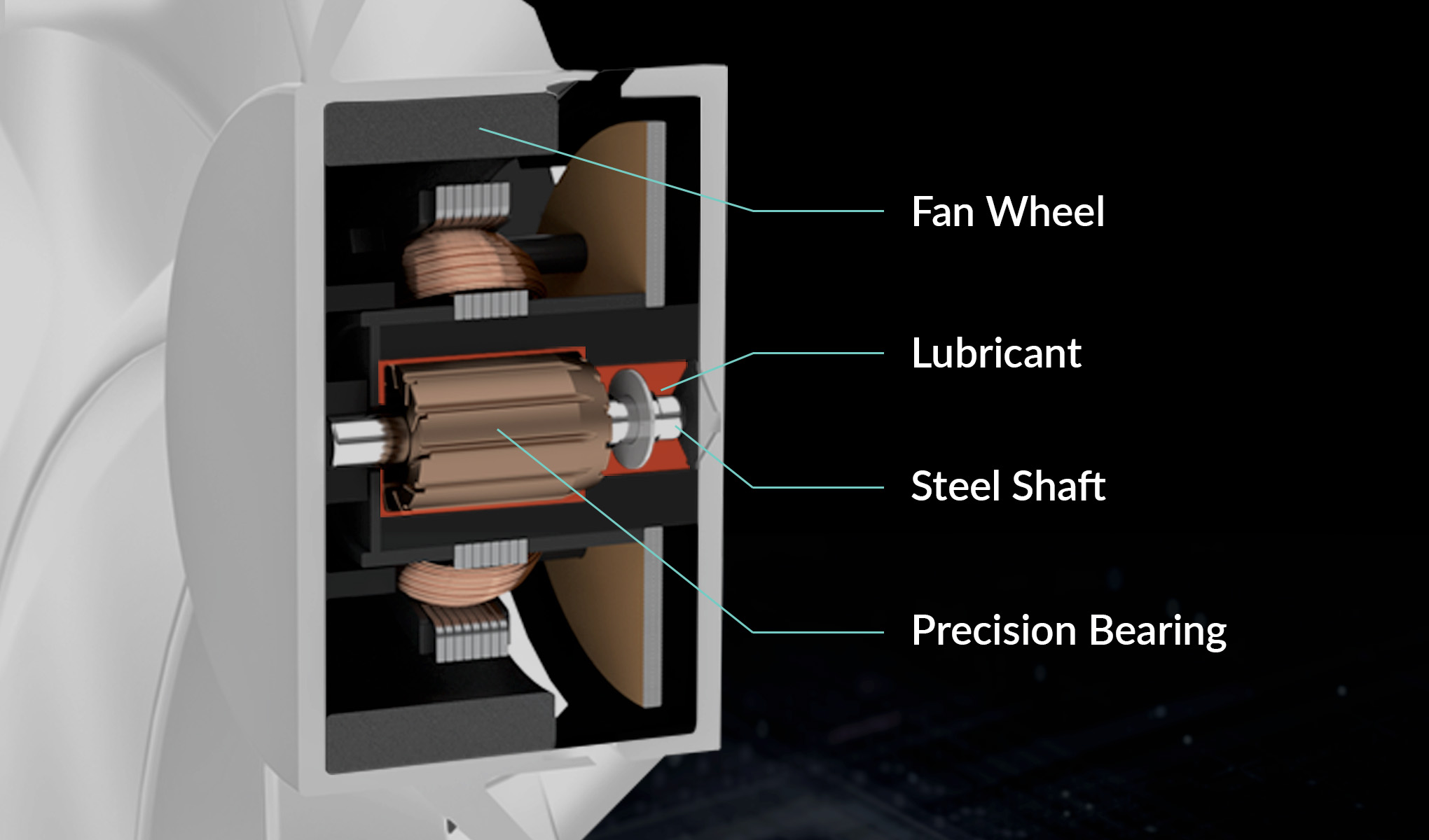 Díky kombinaci slitiny a maziva vyvinuté v Německu je tření uvnitř ložiska minimalizováno a je dosaženo vyšší účinnosti. Kromě zabránění ztrátě maziva je opotřebení čepu a pouzdra také sníženo na minimum. Vzniká tak méně tepla, menší hluk ložisek a výrazně se prodlužuje životnost ventilátoru.