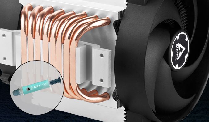 Freezer 4U-M Rev. 2 je dodáván s teplovodivou pastou MX-6. Teplovodivá pasta ARCTIC Ultimate Performance snižuje hromadění tepla mezi rozvaděčem tepla CPU a chladičem. Teplovodivá pasta není ani vodivá, ani kapacitní, a proto je naprosto bezpečná pro použití.