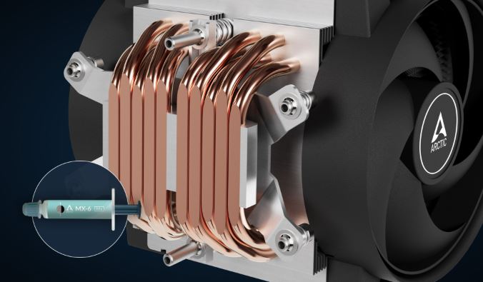 Freezer 4U-SP5 je dodáván s teplovodivou pastou MX-6. Teplovodivá pasta ARCTIC Ultimate Performance snižuje hromadění tepla mezi rozdělovačem tepla CPU a chladičem. Teplovodivá pasta není ani vodivá, ani kapacitní, a proto je naprosto bezpečná pro použití.