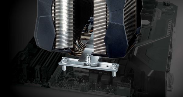 The massive, asymmetrical twin-tower CPU cooler offers more cooling surface and, together with its six U-shaped Direct-Touch Heatpipes, ensures better heat distribution and faster heat dissipation.