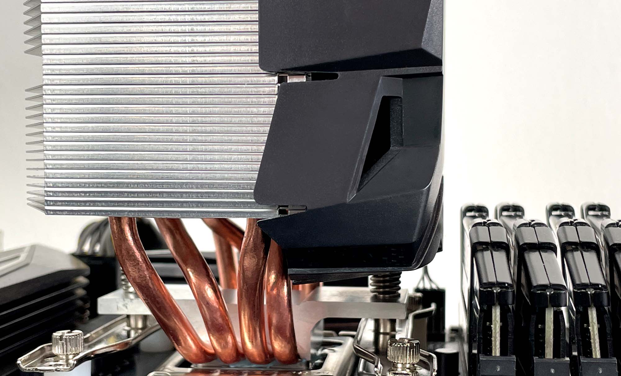 Optimised performance meets modern, black design and whisper-quiet operation. With its four offset heat pipes, the single-tower CPU cooler enables fast heat transfer into the heat sink, where it can be efficiently dissipated by means of a 120 mm fan.