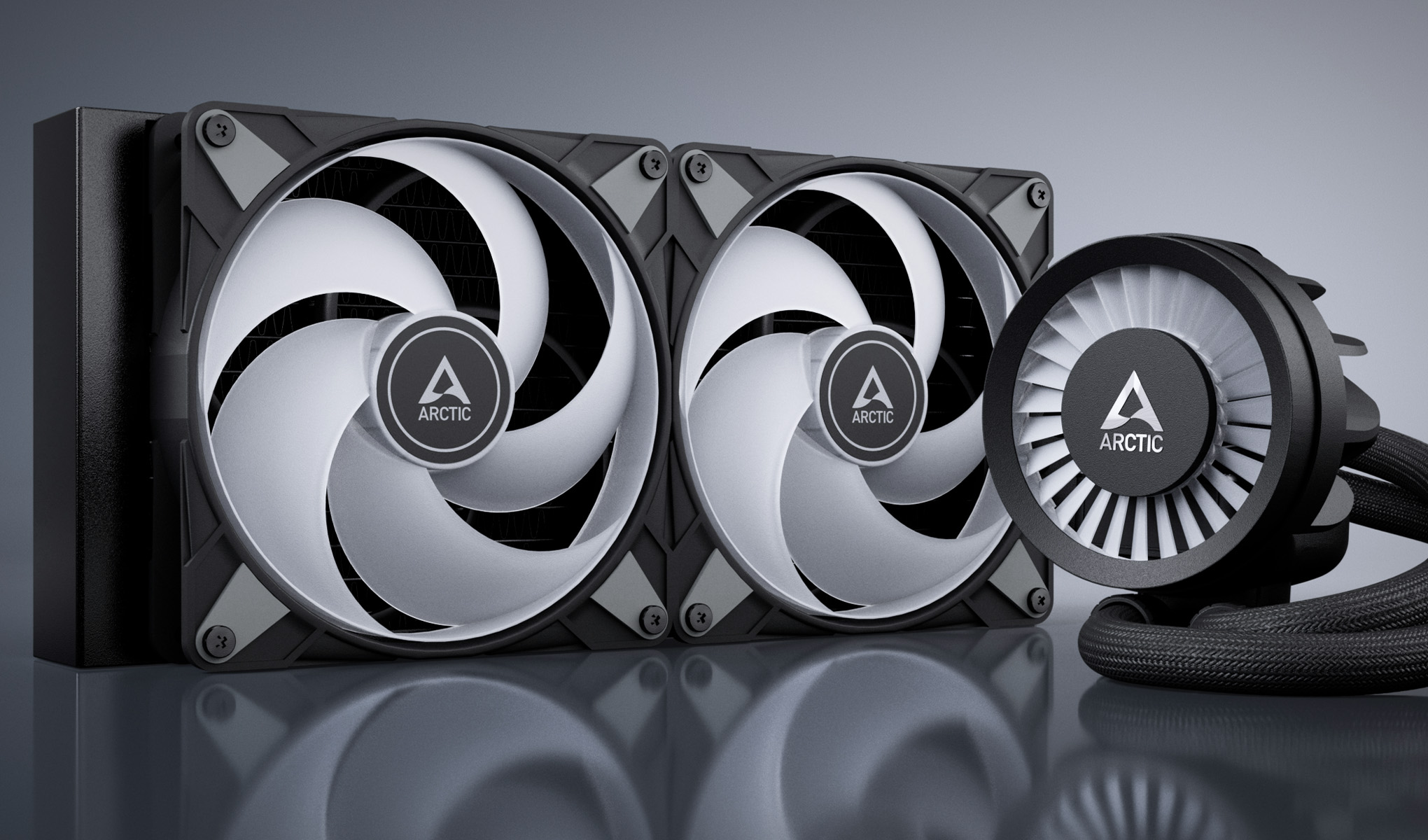 Liquid Freezer III je připraven k okamžitému použití díky předinstalovaným ventilátorům chladiče v tlačné konfiguraci. Kabely ventilátoru jsou ukryty v plášti hadic, takže k základní desce stačí připojit pouze jeden kabel. S přiloženou teplovodivou pastou MX-6 získáte vše, co potřebujete pro rychlou a snadnou instalaci.