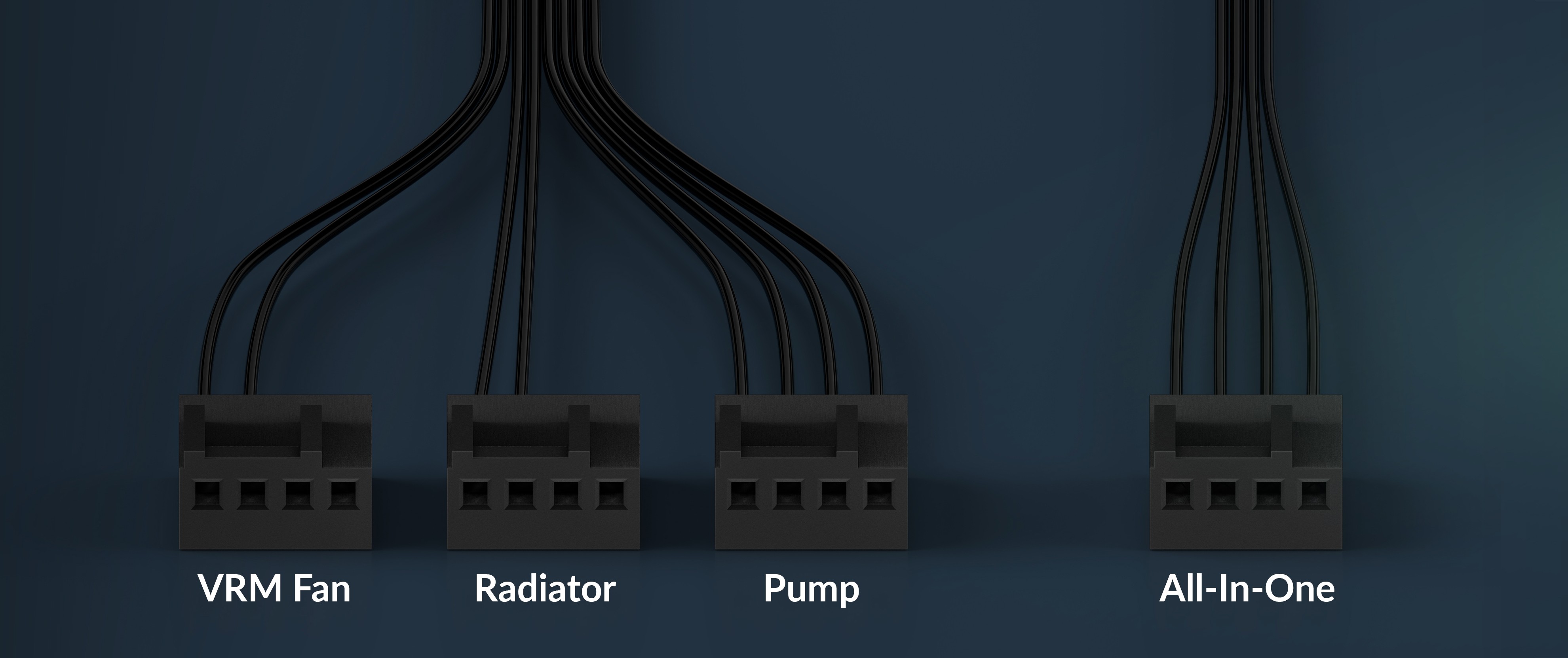 Pomocí rozbočovacího kabelu lze čerpadlo, ventilátor VRM a ventilátory chladiče ovládat samostatně nebo synchronizovat pomocí jediného signálu PWM pomocí kabelu typu „vše v jednom“.