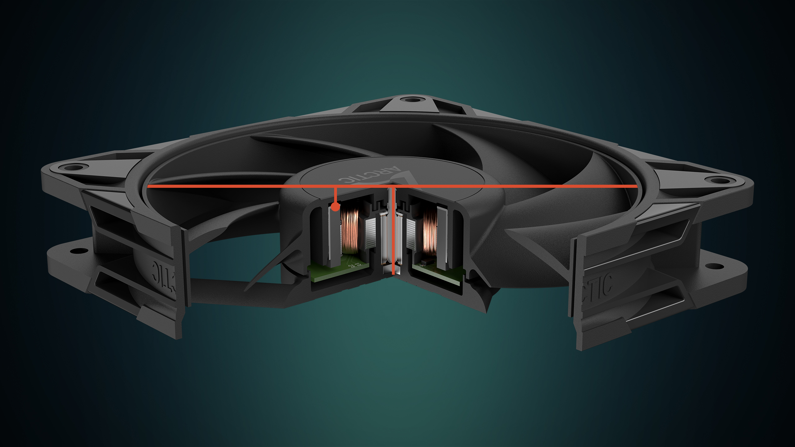 Ventilátor poskytuje vyšší výkon při nízkých otáčkách s vyšším průtokem vzduchu a statickým tlakem při pouhých 25 dB(A) – ideální pro tiché a výkonné chlazení.