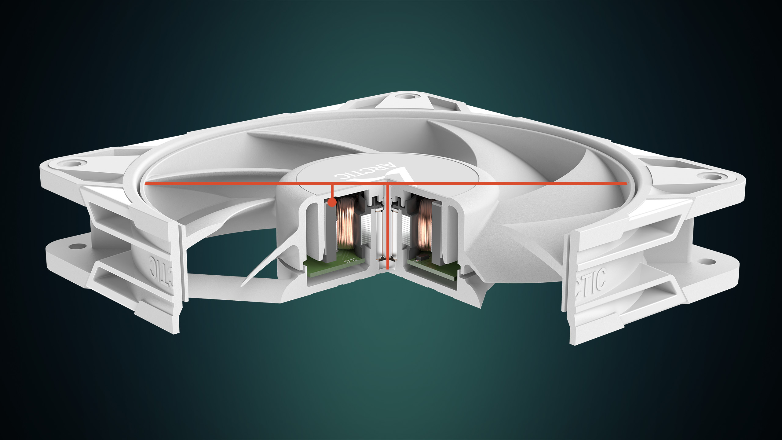 Ventilátor poskytuje vyšší výkon při nízkých otáčkách s vyšším průtokem vzduchu a statickým tlakem při pouhých 25 dB(A) – ideální pro tiché a výkonné chlazení.
