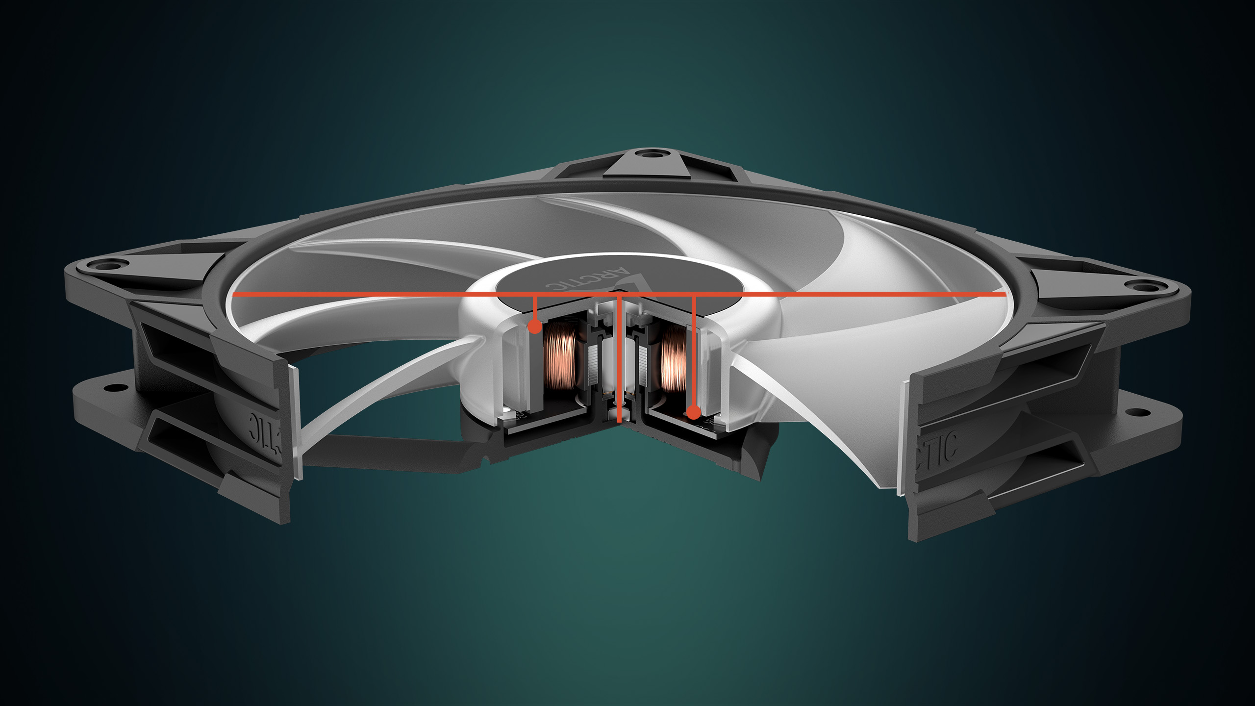 Ventilátor poskytuje vyšší výkon při nízkých otáčkách s vyšším průtokem vzduchu a statickým tlakem při pouhých 25 dB(A) – ideální pro tiché a výkonné chlazení.