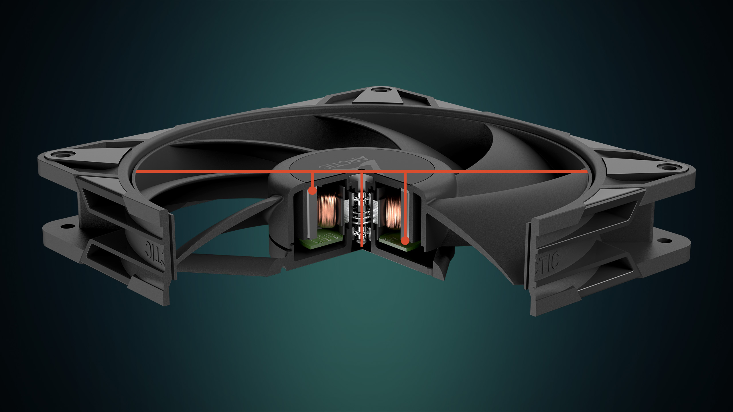 Ventilátor poskytuje vyšší výkon při nízkých otáčkách s vyšším průtokem vzduchu a statickým tlakem při pouhých 25 dB(A) – ideální pro tiché a výkonné chlazení.