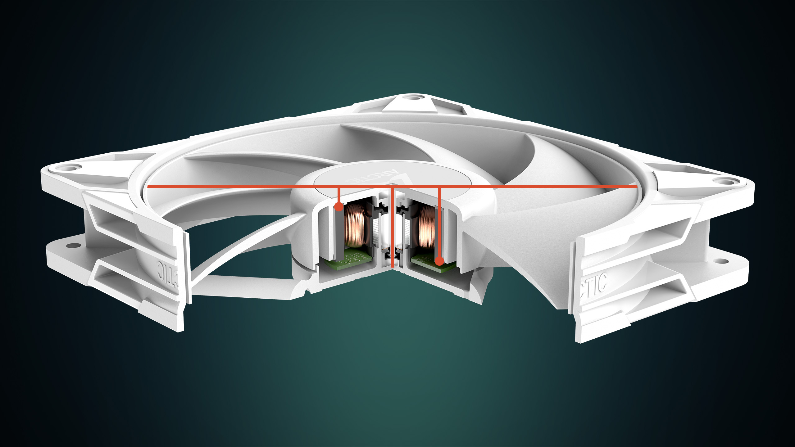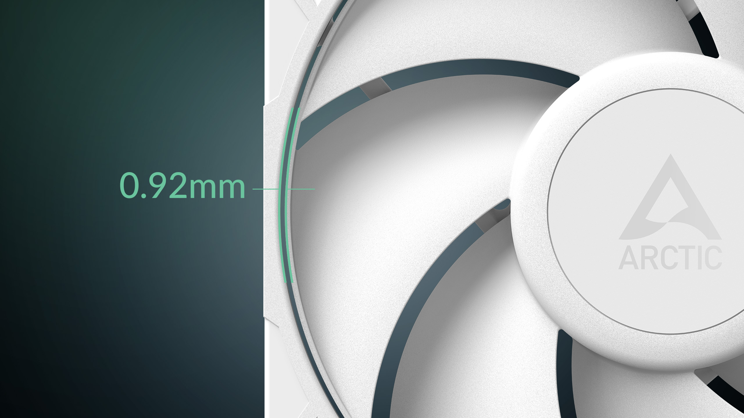 Ventilátor poskytuje vyšší výkon při nízkých otáčkách s vyšším průtokem vzduchu a statickým tlakem při pouhých 25 dB(A) – ideální pro tiché a výkonné chlazení.