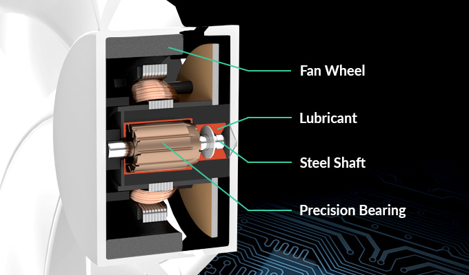 Thanks to an alloy/lubricant combination developed in Germany, friction within the bearing is reduced and greater efficiency is achieved. As a result, there is less heat development as well as less bearing noise, which means you can enjoy a longer service life from your fan.