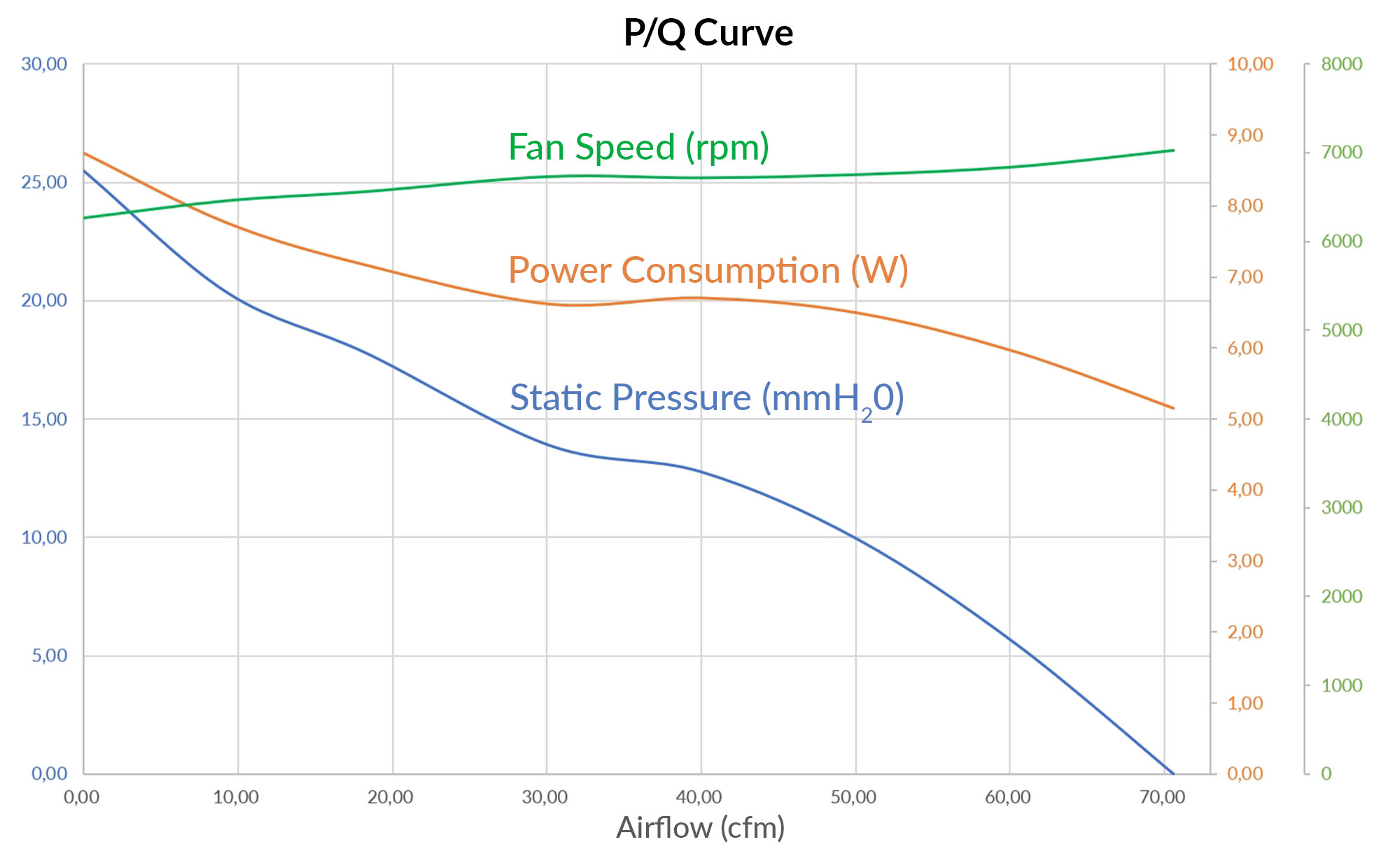 Chladiče a radiátory těží z ventilátorů s vysokým statickým tlakem. S8038-10K má statický tlak 51 mm/H 2 O, což mu umožňuje tlačit vzduch i přes úzká chladicí žebra. Zároveň dosahuje maximálního průtoku vzduchu 173,30 m3/h, což mu umožňuje rychle odvádět teplo z krytů. Tyto vlastnosti z něj dělají ideální volbu pro širokou škálu aplikací.
