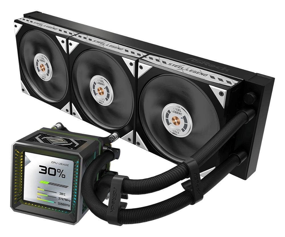 ASROCK Vodní chladič Steel Legend Dark 360 LCD, 3x120mm, LGA1851, AM5, černá